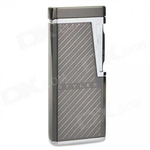 Diagonal Stripes Pattern Electronic Sensor Windproof Butane Gas Lighter - Grey (1 x LR44)