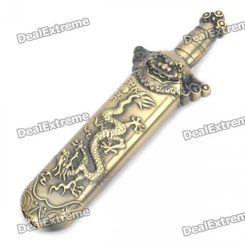 Dragon & Phoenix Image Sword Style Windproof Butane Jet Torch Lighter - Random Color