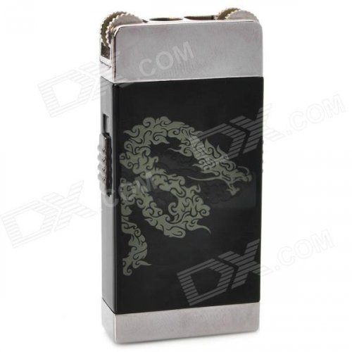 Dragon Pattern Dual Wheel Dual Flame Butane Gas Lighter - Black
