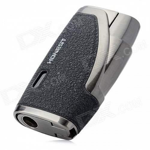 Dual Flame Wind Proof Butane Gas Lighter - Grey + Black