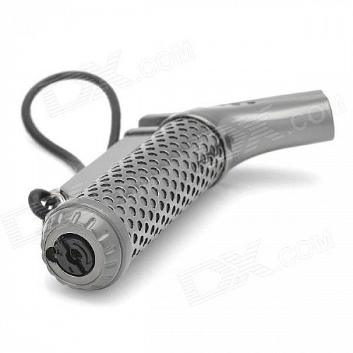 Elegant Gun Style Stainless Steel Butane Gas Lighter w/ Strap - Dim Grey