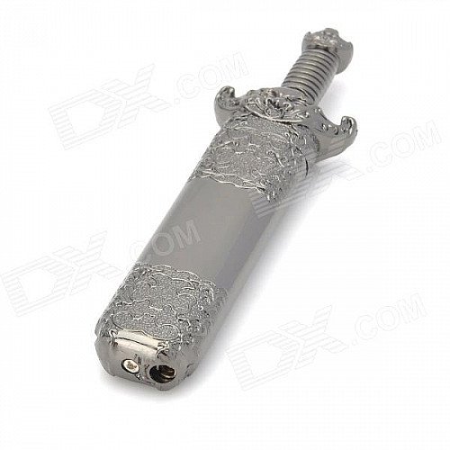 Elegant Sword Shape Irony Windproof Butane Gas Jet Lighter - Black