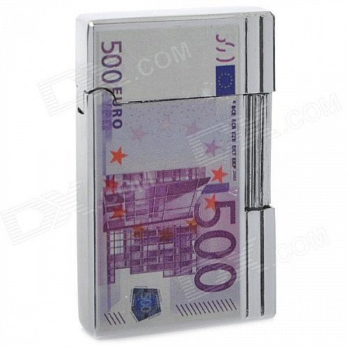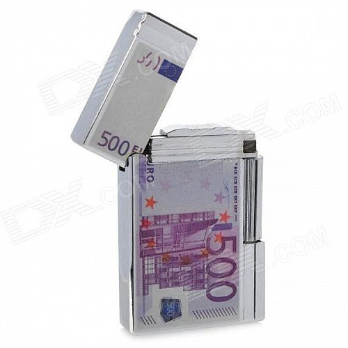 Five Hundred Euro Pattern Butane Gas Lighter - Silver