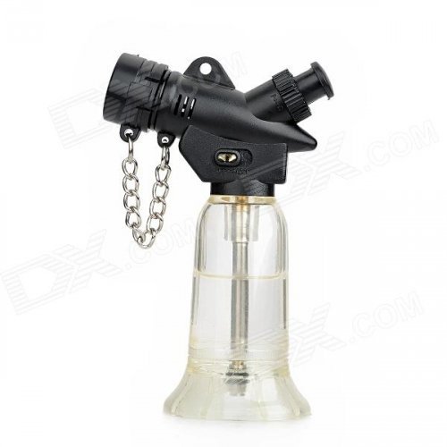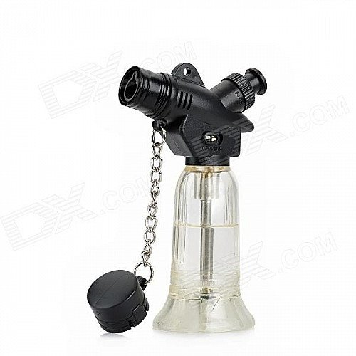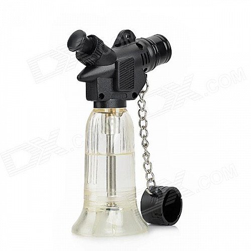 FS355 Plastic Windproof Butane Gas Lighter w/ Fire Lock Chain - Silver + Translucent Blue