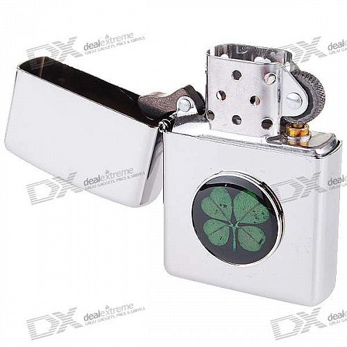 Genuine Zippo Copper Oil Lighter - Four-leaf Clover (Silver)