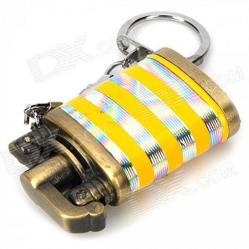 Horizontal Stripe Pattern Butane Gas Lighter w/ Keychain - Silver + Yellow