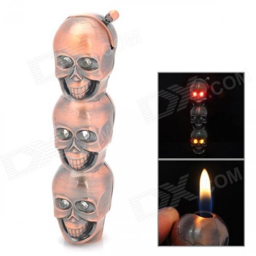 K002 Skull Shaped Copper Aluminum Alloy Butane Lighter - Copper
