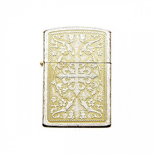 Metallic Oil Lighter with Golden Line Stained Glass Design