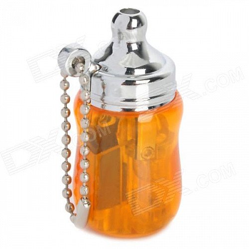 Mini Baby Bottle Style Windproof Butane Gas Lighter - Orange + Silver