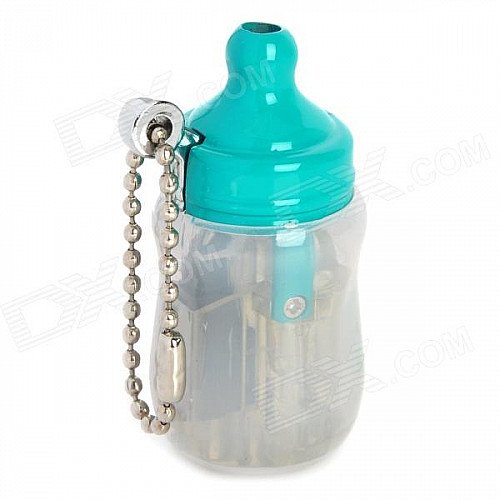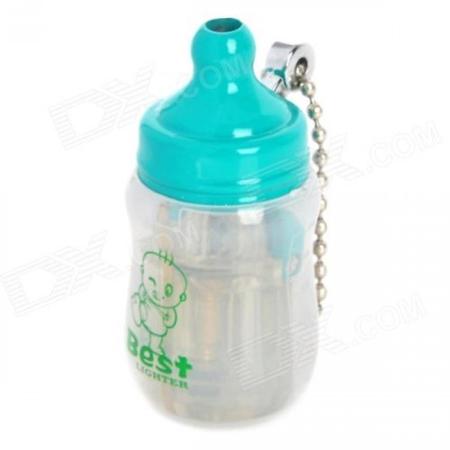 Mini Baby Bottle Style Windproof Butane Gas Lighter - Transparent + Green
