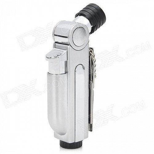 Multi-in-One Windproof Butane Jet Lighter w/ Knife / Scissors / Nail File & Opener - Silver