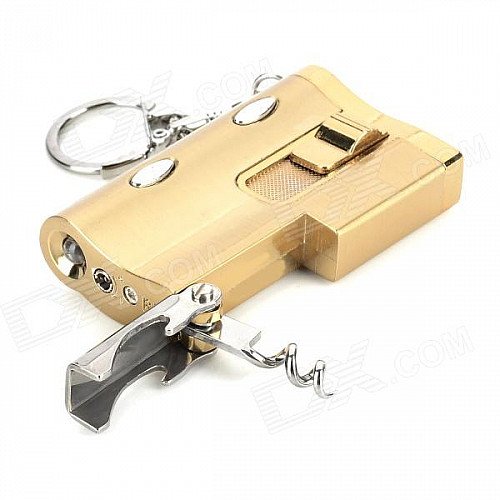 Multifunction Aluminum Alloy Windproof Butane Gas Lighter / 2-LED / Bottle Opener - Silver + Golden