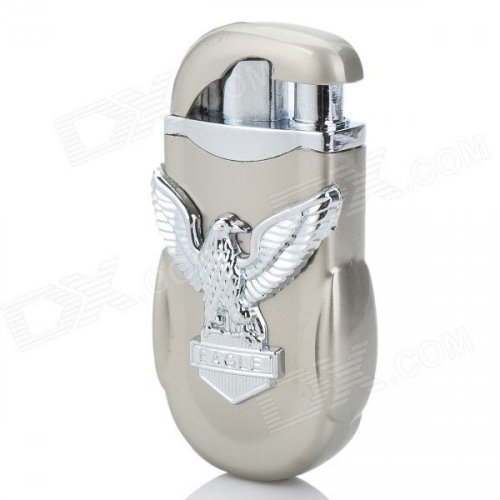 N-05 Eagle Pattern Fashionable Windproof Butane Blue + Orange Flame Lighter - Silver