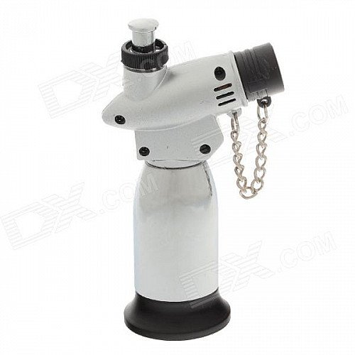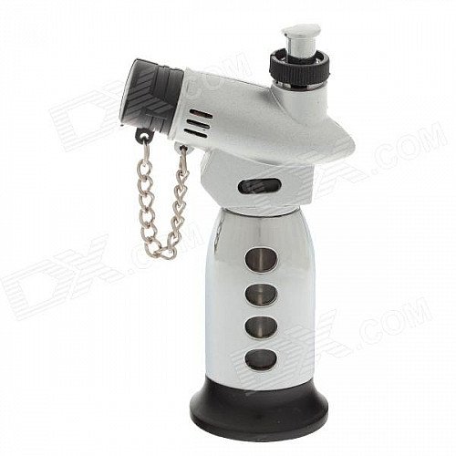 New Creative Blue Flame Windproof Butane Gas Jet Lighter w/ Safe lock / Cover - Argent + Silver