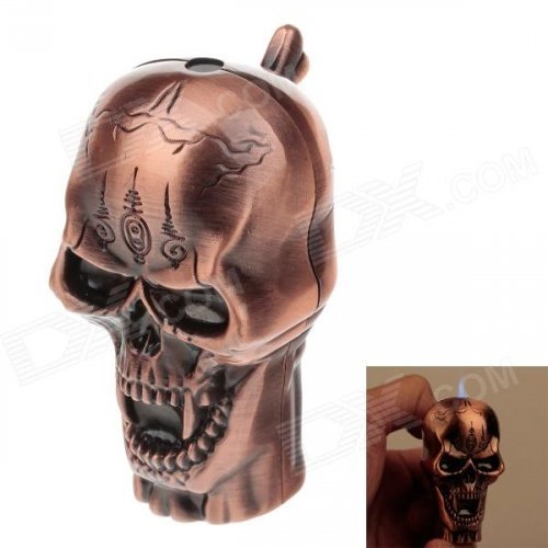 Personality Skull Head Style Blue Flame Butane Gas Lighter - Purple Bronze