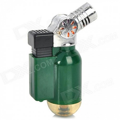 Portable Windproof Blue Flame Butane Gas Jet Lighter - Deep Green + Silver