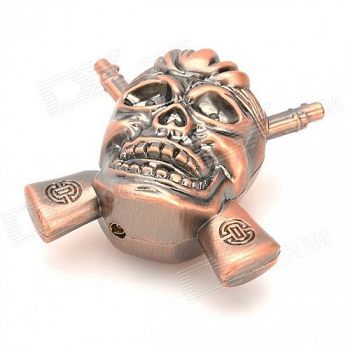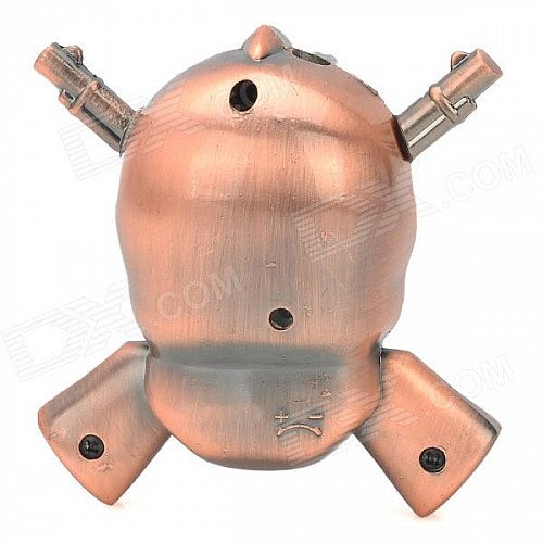 R4647C Double Gun Skull Style Butane Lighter w/ LED Flash Light - Bronze
