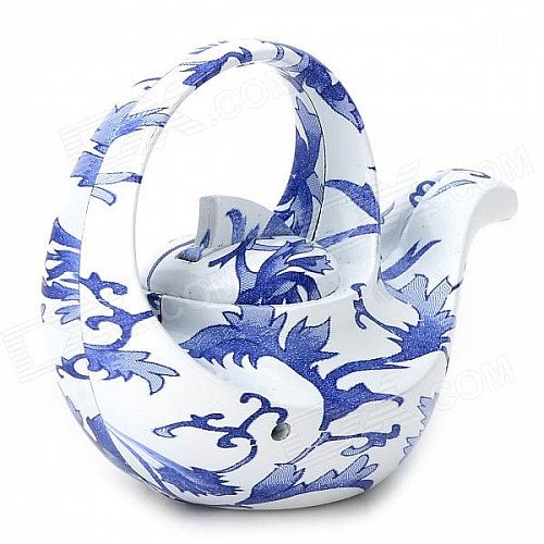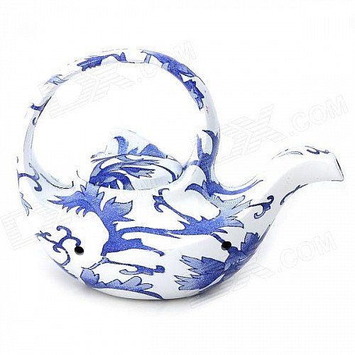 Retro Blue and White Porcelain Zinc Alloy Teapot Style Windproof Butane Gas Lighter - White + Blue