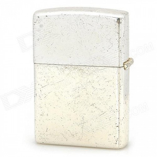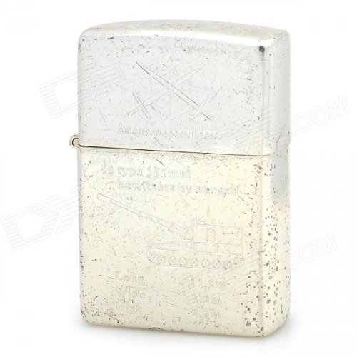 Retro Worn Tank Pattern Windproof Fluid Fuel Lighter - Silver