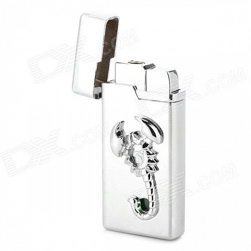 Scorpion Style Aluminium Alloy Butane Lighter w/ LED Light - Silver