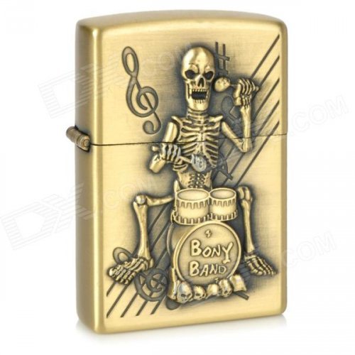 Skull Drumming Pattern Kerosene Oil Lighter - Bronze
