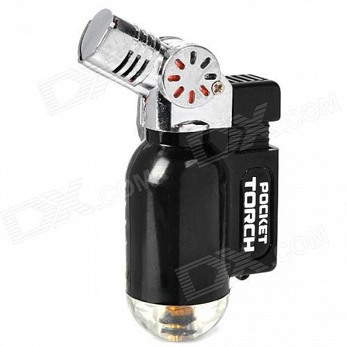 Stylish Windproof Butane Jet Torch Lighter - Black + Silver