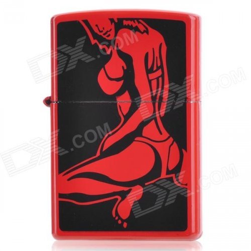 Uncap Style Sexy Girl Pattern Kerosene Oil Lighter - Black + Red