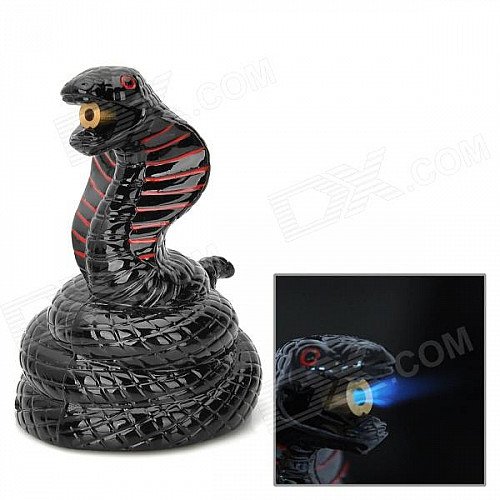 Unique Cobra Shape Windproof Butane Gas Lighter - Black