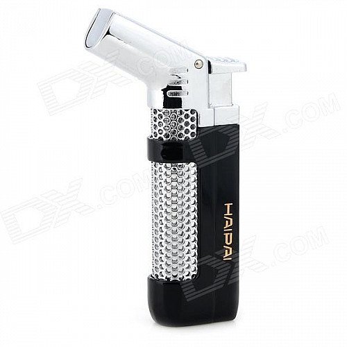 Windproof 1300'C Butane Jet Gas Lighter for Soldering / Lighting Cigarette - Black + Silver