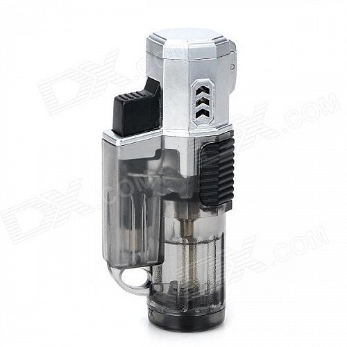 Windproof 4-mode Blue Flame Butane Lighter - Translucent Black + Silver