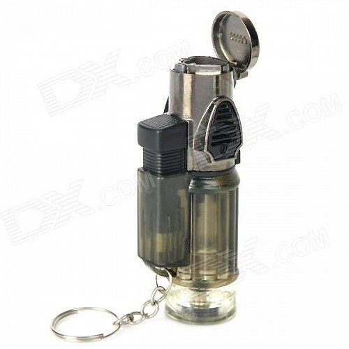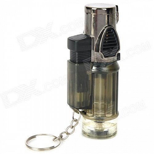 Windproof Adjustable 3-Flame Butane Jet Lighter with Keychain - Black