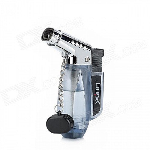 Windproof Butane Gas Jet Lighter w/ Keychain - Silver + Light Blue