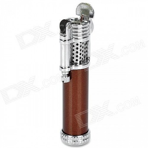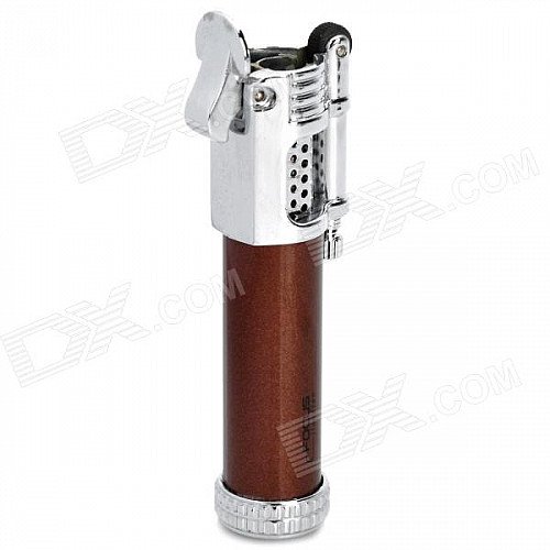 Windproof Flame Adjustable Butane Gas Jet Lighter - Brown + Silver