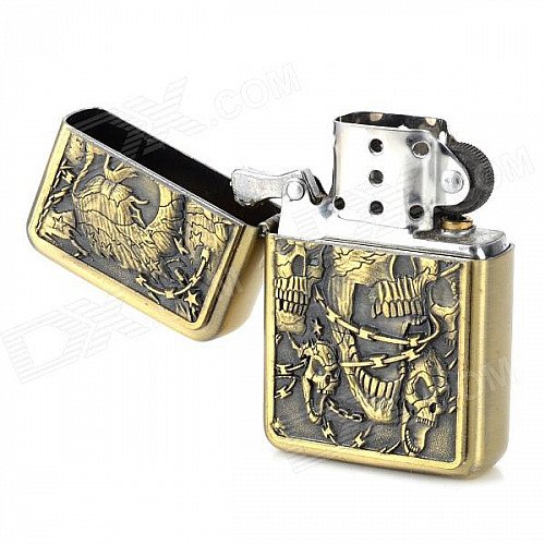 LiTian 01A Skull Pattern Copper Zinc Alloy Yellow Flame Kerosene Oil Lighter - Bronze