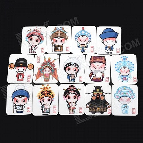 10050054M Cartoon Peking Opera Style Refrigerator Magnet Sticker Set - Multicolored (14 PCS)