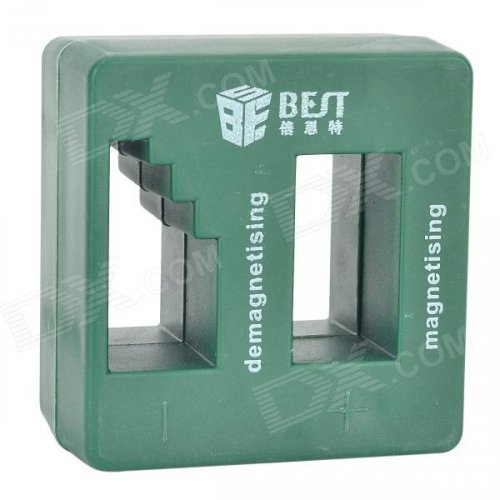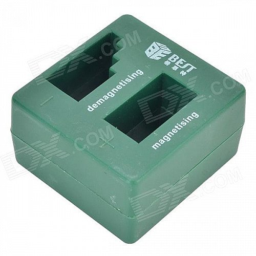 - Demagnetizes any magnetized metal objects by putting them though the "- Demagnetize" hole