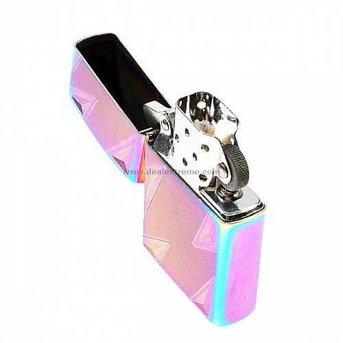 Metallic Oil Lighter with Rainbow and Lightening Design
