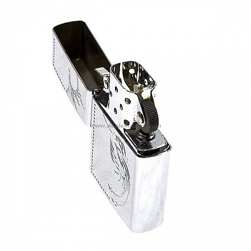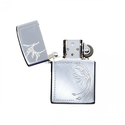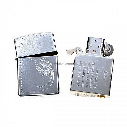 Metallic Oil Lighter with Silver Dragon and Phoenix Design
