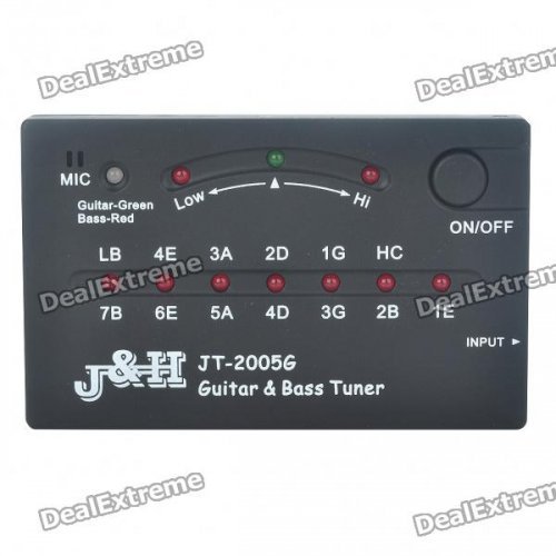 - Color: Black - Plastic material housing - LED indicators - Tuning range: C1(32.7Hz---B7(3951Hz) - Accuracy: +/- 1 cent - Auto shut off without any operation after 10 minutes - Powered by 2 x AAA batteries (included) - Comes with Chinese/English manual
