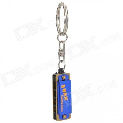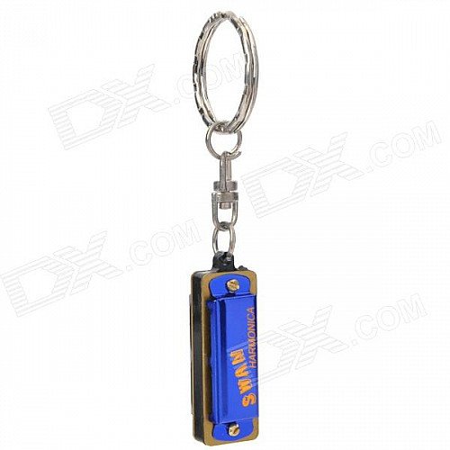 Mini 4-Hole 8-Tone Harmonica with Keychain - Blue