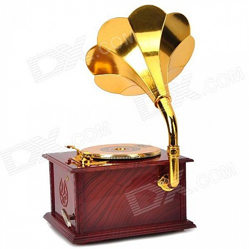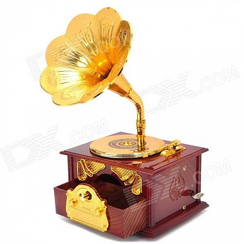 Stylish Phonograph Clockwork Spring Music Box - Brown + Yellow