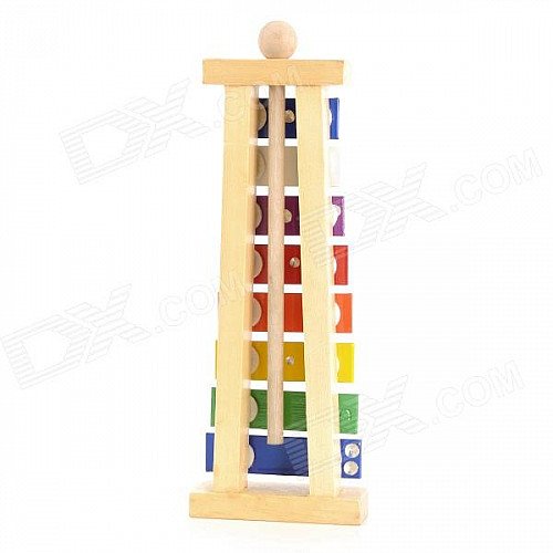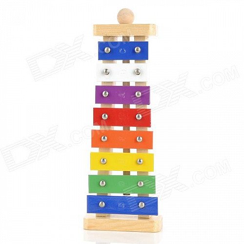 Wood Frame Glockenspiel Xylophone 8 Notes Aluminum Plate Musical Instrument Toys - Multicolored