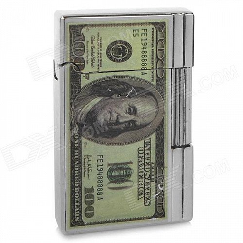 One Hundred Dollars Pattern Butane Gas Lighter - Silver