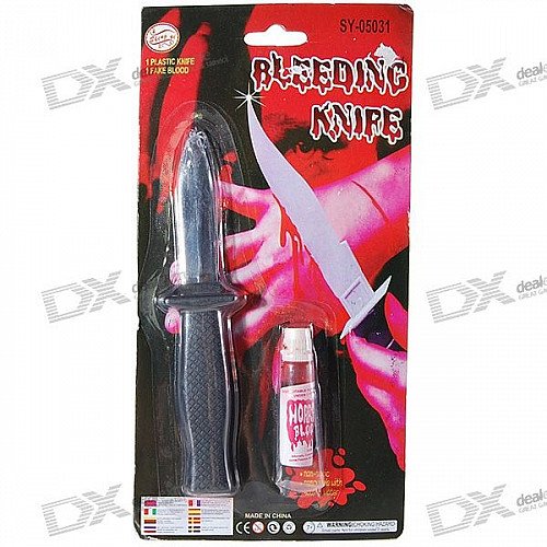 Plastic Bleeding Knife with Realistic Blood Gel for Halloween