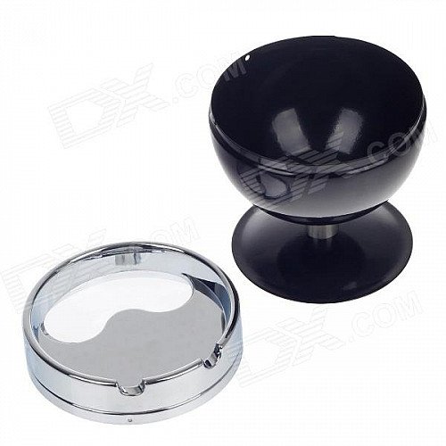 Plastic Cup Style Rotary Top Ashtray - Black + Silver