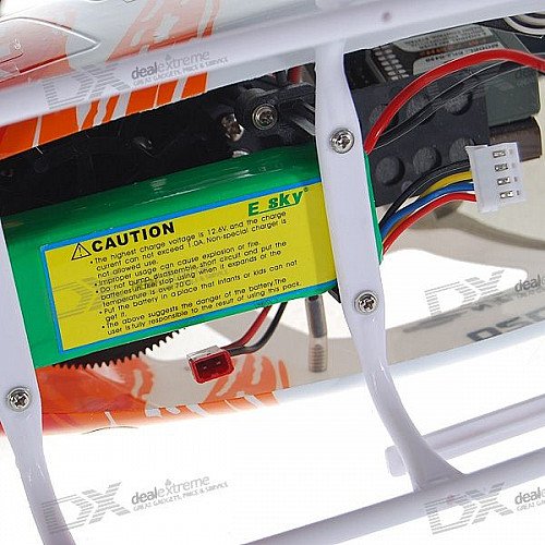 - Driven by two 370 super motors, equipped with digital servo and updated Esky 4ch transmitter/the copper counterweight of flybar stabilizes provides heli in various flight states.