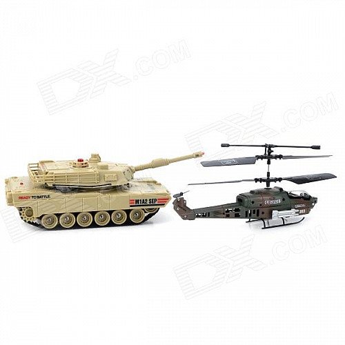 | 7.44 oz (211 g) | 1 x R/C tank 1 x R/C helicopter2 x Remote controllers 1 x 2-flat-pin plug power adapter (110~240V / 100cm)1 x Battery 1 x USB cable (60cm)1 x Main blade 1 x Tail blade |
