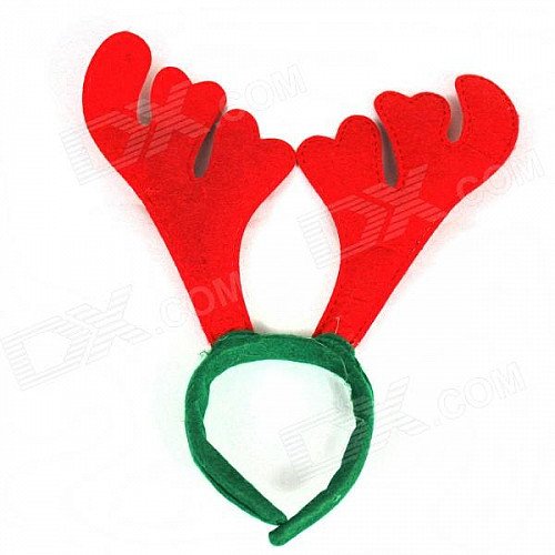 Simple Large Antlers Small Bell Headdress for Christmas - Red + Green + Golden