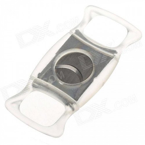 1526 High Quality Double Blades Sharp Stainless Steel Cigar Cutter - Silver + Transparent