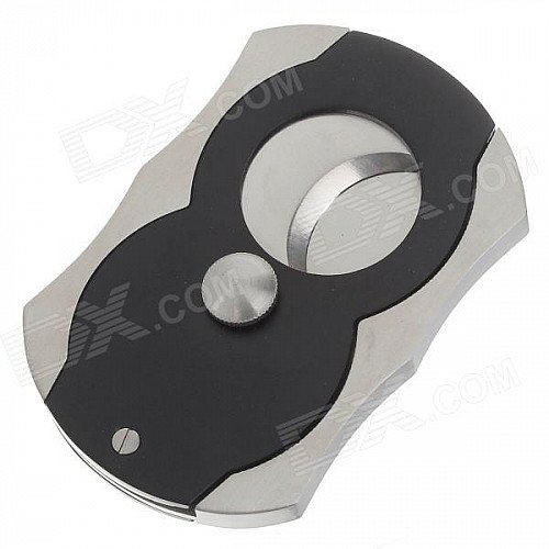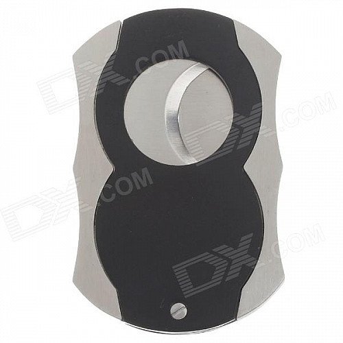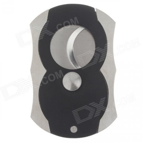 5203 High Quanlity Flip Down Double Blades Sharp Stainless Steel Cigar Cutter - Silver + Black
